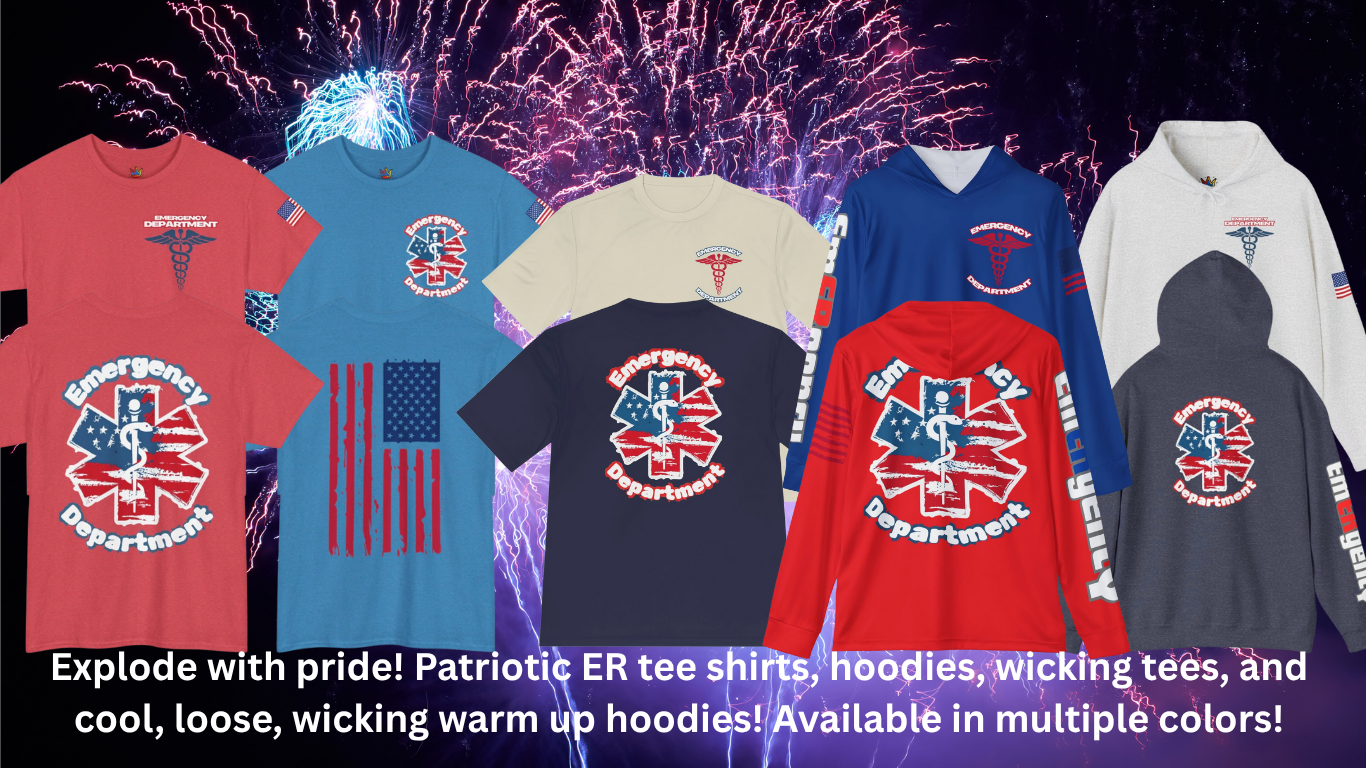 Patriotic Emergency Department T Shirt Blue Writing White Symbol